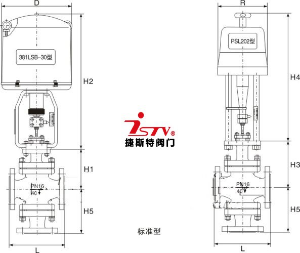 電子式電動三通調節閥尺寸: